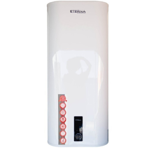 Оригинальный круглый корпус электрического водонагревателя ETERNA (ЭТЕРНА) FS-100  выполнен из тонкого металла, а конструкция надежно защищена от коррозии и термического воздействия. Простое и удобное управление системой нагрева воды удачно дополняется электронным термостатом, с возможностью регулировки температуры воды в пределах от 1 до 75 градусов. Особенности и преимущества: * Конкурентная цена * Эффективная теплоизоляция позволяющая долго сохранять воду нагретой * Удобное и интуитивно-понятное управление * Реализовано до четырех ступеней безопасности водонагревателей * Многообразие моделей * Компактный плоский дизайн * Наличие на складе всего модельного ряда * Поддержание стабильной температуры воды * Бак из нержавеющей стали AISI314 * Медные нагревательные элементы * Системы защиты обратный клапан, от перегрева, предохранительный клапан * Гарантия на внутренний накопительный бак – 10 лет, на систему управления и нагревательные элементы – 1 год. Модельный ряд водонагревателей ETERNA серии FS выполнен в четырех вариантах объемом 30, 50, 80, 100 литров с баками из высококачественной нержавеющей стали. Наличие надежных ТЭНов из меди, плоские корпуса и высокие технические характеристики – все это по оптимальной цене, гарантируют приборам безопасную и длительную эксплуатацию.
