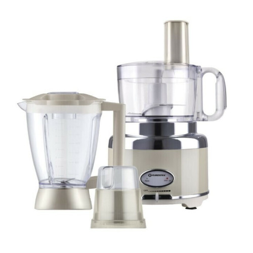 Кухонный комбайн Eurostek EFP-2079. Максимальная мощность 800Вт; металлический корпус, плавная регулировка скорости; измельчитель 1.2л., блендер 1.75л., кофемолка. Стальные лезвия измельчителя; диски для размягчения, получения эмульсий. Нарезка тонкими ломтиками, шинковка, приготовление жульена, картофельная терка - с 4-мя вставками.