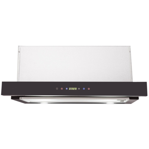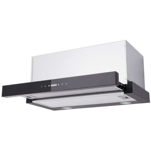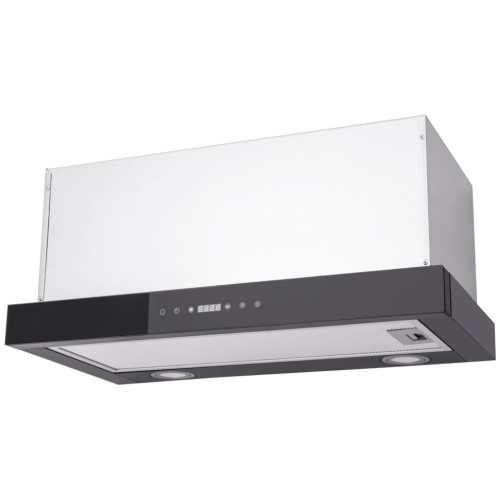 Кухонная вытяжка. Тип установки встраиваемая Цвет черный Ширина 60 см Производительность м3/час 1000 Скоростей 3 Моторов 1 Часы + Освещение светодиодные лампы 2*1,5 Вт Уровень шума 42 дБ Диаметр воздухоотвода 150 мм Выдвижная панель декоративная алюминиевая ручка белого цвета Датчик дыма и температуры + Дистанционное управление + работает в режиме рециркуляции при наличии угольного фильтра (дополнительная опция) + Моющийся алюминиевый жировой фильтр + Размеры595*315*262 мм.
