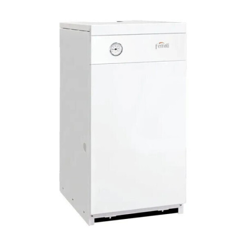 Газовый напольный одноконтурный стальной котёл с открытой камерой сгорания Ferroli Torino 50 - высокопроизводительное устройство для обогрева помещений в условиях климата России. Благодаря производительности в 50 кВт он способен обеспечить теплом до 500 квадратных метров площади. Особенности: * полностью энергонезависимый котел - не требует внешних источников энергии; * высокий КПД - 90%; * открытая камера сгорания с конвекционным типом нагрева; * рабочее давление теплоносителя – до 3 бар (предназначен для эксплуатации в открытых и закрытых системах отопления); * высокоэффективный теплообменник с толщиной стенок 3 мм обеспечивает бесперебойную работу котла на весь срок эксплуатации; * пьезомеханический тип розжига горелки.