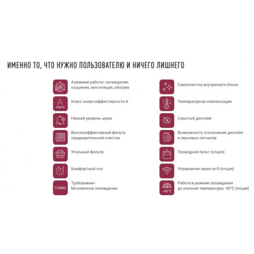 | Режимы работы | обогрев, осушение, охлаждение |