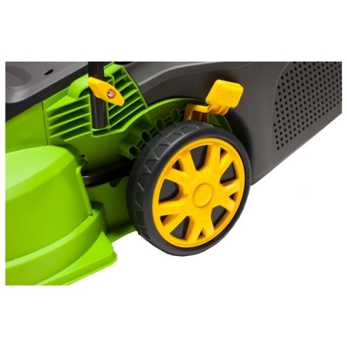 колесная газонокосилка электрический двигатель (1500 Вт) от сетевого кабеля ширина / высота скашивания: 36 см / 25-65 мм площадь скашивания: 700 м² выброс травы в жесткий травосборник , назад вес: 11.5 кг