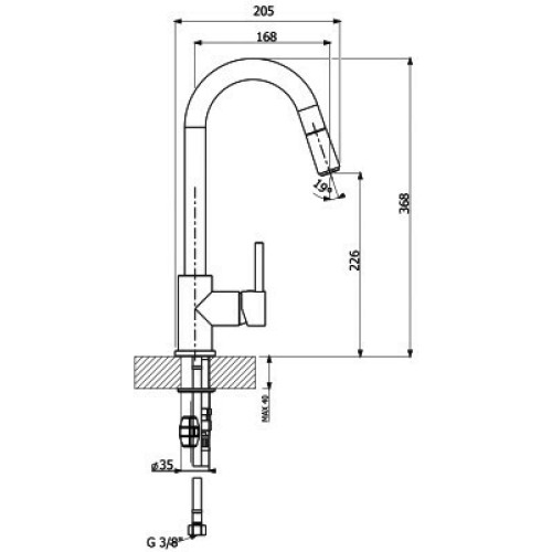 Поворотный выдвижной излив. Керамический картридж. Гибкая подводка