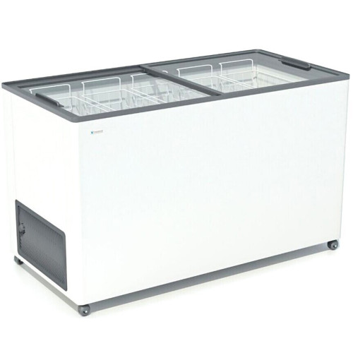Морозильный ларь Frostor представлен в белом корпусе в горизонтальном исполнении с размерами 140x84x60 см. Прибор объемом 322 л разработан для применения на складах, в цехах, организациях общественного питания, а также на небольших производствах. В него можно поместить очень много продуктов для хранения в замороженном состоянии. Если вы много замораживаете, такое устройство пригодится и в быту. Конструкция ларя предусматривает наличие одного отделения, в котором дополнительно используются две решетки. В них можно складывать продукты небольшого размера, а также продукты, которые вы чаще всего будете использовать. Frostor отличается минимальным энергопотреблением, которое соответствует стандарту А. Работу ларя сопровождают надежные и мощные компрессоры. Быстрое охлаждение продуктов обеспечивает испаритель типа SKIN. Особенность прибора в способности работать при больших плюсовых температурах, поэтому устанавливать его можно на кухнях или в подсобных зонах.