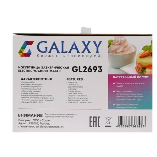 Йогуртница приготовит для Вас полезное лакомство, содержащее живую йогуртовую культуру без консервантов, ароматизаторов и красителей. Приготовление домашнего йогурта позволяет дать волю фантазии в выборе наполнителей и получить натуральный и полезный продукт для Вашей семьи! Мощность, Вт: 20; Объем на 0,9 л. продукта; Электронное управление; Светодиодный дисплей; Индикаторы программ; Таймер на 48 часов; Низкое потребление электроэнергии; Функция приготовления рисового вина; 9 стеклянных емкостей с крышками; Напряжение сети, В: 220-240; Частота, Гц: 50. скрыть.