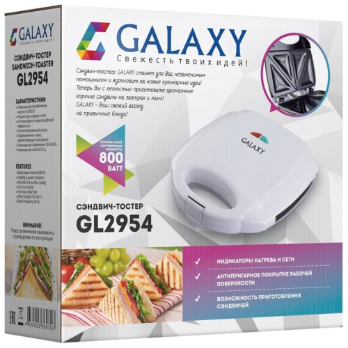 Сэндвич-тостер GALAXY GL2954 отлично подойдет для приготовления сэндвичей и быстрого поджаривания плоских кусков хлеба. Модель оснащена специальным антипригарным покрытием высокого качества, которое исключает прилипание продуктов и не требует большого количества масла. Антипригарная поверхность легко чистится, обладает высокой стойкостью к температурным перепадам и механическим воздействиям. Корпус сэндвич-тостера выполнен из жаропрочного пластика, он безопасен при контакте с пищевыми продуктами. Ручки изделия обладают специальной термозащитой, которая гарантирует абсолютную безопасность при работе. Модель оснащена индикаторами работы и нагрева. Сэндвич-тостер GALAXY GL2954 не займет много места благодаря компактным размерам и возможности хранения как в горизонтальном, так и вертикальном положении.