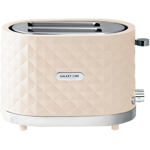 Тостер Galaxy Line GL2912 бежевого цвета располагается на прорезиненных ножках, обеспечивающих устойчивость. Модель оснащена двумя отсеками размером 130х32 мм каждый для поджаривания, подогрева или разморозки кусочков хлеба. Тосты центрируются и поднимаются автоматически. Устройство обладает семью рабочими режимами, которые настраиваются с помощью механического регулятора. Предельная расходуемая мощность составляет 1200 Вт. Подсоединение к электрической розетке выполняется посредством кабеля длиной 0,9 м. Для сбора крошек встроен специальный поддон.