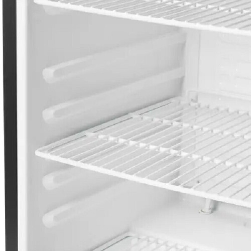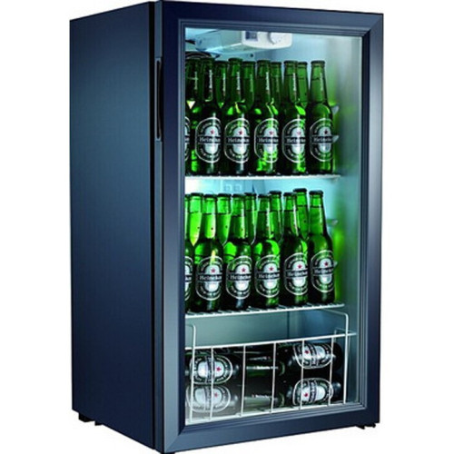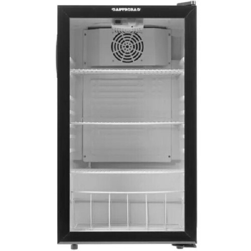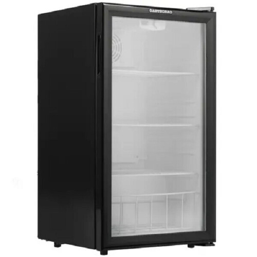 Холодильник компактный GASTRORAG BC98-MS выполнен в черном вертикальном корпусе размерами 48x85x47.5 см и представляет собой холодильную витрину, предназначенную для демонстрации товара. При этом, аппарат обеспечивает охлаждение продуктов, поддерживая установку минимальной температуры на уровне 0 градусов. По конструкции она похожа на обычный холодильник, только оборудована дверцей со стеклом, через которое хорошо будет видно содержимое холодильника. В основе GASTRORAG BC98-MS лежит компрессор. Вместительность этого холодильного агрегата соответствует 98 л. Он предусматривает наличие трех пластиковых полок и решетки в нижней части отделения, которая удерживает бутылки, позволяя выставлять их в несколько рядов. Дверца холодильника открывается направо. В качестве охлаждающего вещества модель использует R600a (изобутан), поэтому аппарат не оказывает влияние на здоровье человека и окружающую среду.