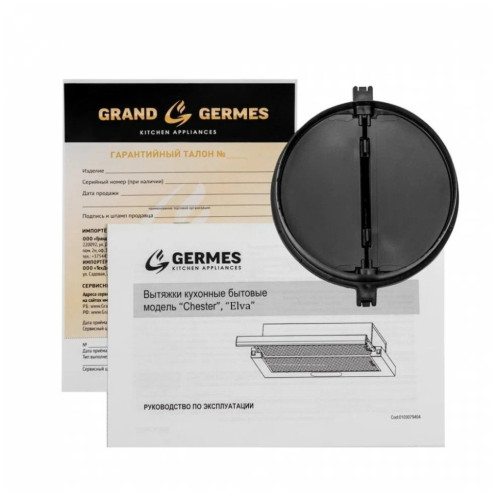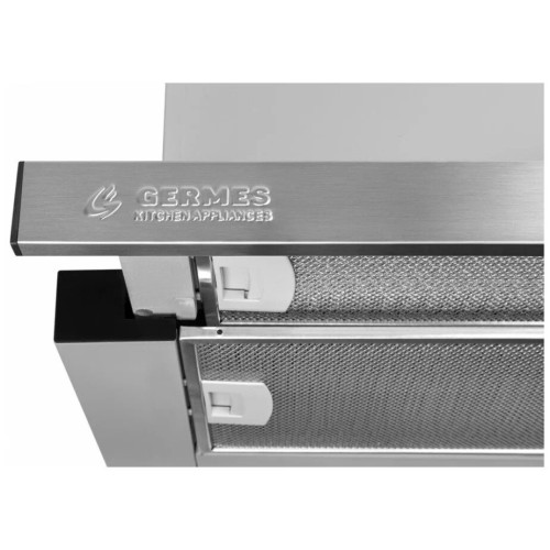 Вытяжка с клавишным управлением и тремя скоростями. При использовании вытяжки без подключения к вентиляционной шахте (в режиме рециркуляции), необходимо дополнительно приобрести комплект угольных фильтров Germes Тип 1