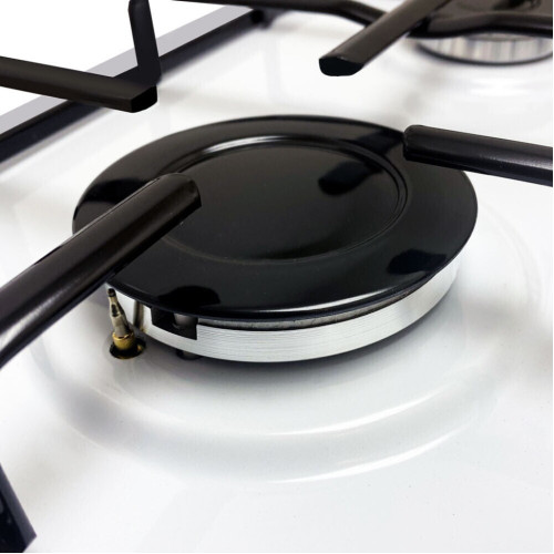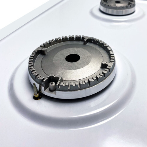Независимая газовая варочная поверхность. Газовый контроль обезопасит Вас если пламя внезапно погаснет, отключив подачу газа. Автоматический Электроподжиг встроен в поворотные регуляторы подачи газа. Эиалированная поверхность. Удобные широкие плоские стальные держатели посуды (решетки).