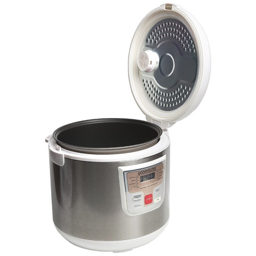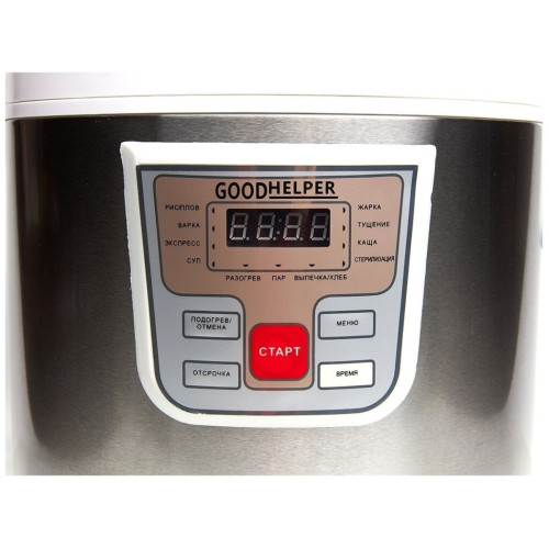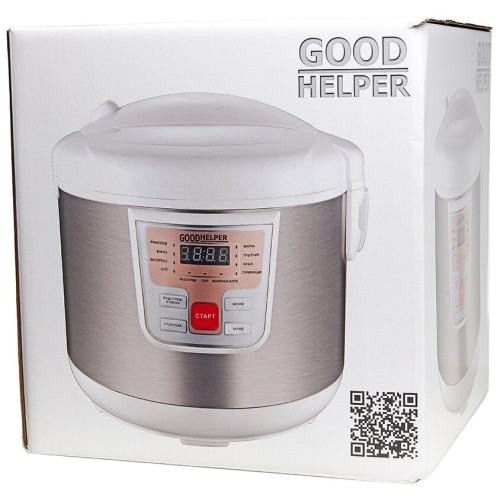 Мультиварка Goodhelper – это полезный кухонный помощник, который заметно упростит ваши домашние хлопоты и при этом не испортит качество приготовления блюд. На выбор вам предоставляется 12 автоматических программ, либо вы самостоятельно устанавливайте время и температуру приготовления – полный простор для кулинарных экспериментов. Подходит для: завтраков, обедов и ужинов. Вы сможете варить, жарить и тушить продукты или использовать режимы, предназначенные для конкретных блюд («Рис/Плов», «Суп», «Каша»). А также прибор будет полезным для сезонных заготовок: функция «Стерилизация» позволит подготовить овощи и фрукты к консервированию. Устройство умеет и печь: пирог, бисквит и даже хлеб получатся ничуть не хуже, чем в духовом шкафу. Объём чаши мультиварки – 5 литров. А это значит, что за один раз приготовить блюдо даже для большой семьи-проще простого. Благодаря антипригарному покрытию частички пищи не прилипнут к дну и стенкам, это позволит готовить с минимальным количеством масла или без него. Мытьё ёмкости не доставит вам никаких хлопот. Хотите, чтобы к завтраку вас ждала горячая каша? Положите ингредиенты заранее и установите время начала работы (отсрочка старта возможна на срок до 12 часов). А в случае, если вы решите позавтракать попозже, режим поддержки тепла сохранит вашу еду горячей.