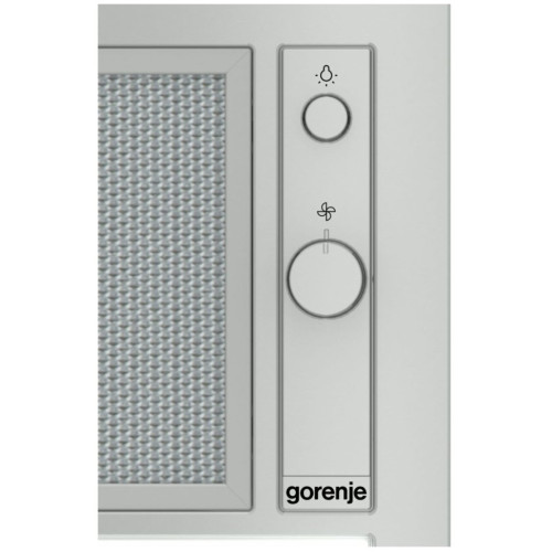 Вытяжка Gorenje BHI681ES рассчитана на встраивание в шкаф. В режиме отвода воздуха ее производительность составляет до 370 кубометров. Также модель способна работать в режиме рециркуляции — для этого надо дополнительно купить угольные фильтры. Устройство размещается над газовой плитой на высоте не менее 75 см, а расстояние между ним и электрической варочной панелью должно быть минимум 65 см. Максимальный уровень шума составляет 67 дБ. Жировой фильтр сделан из алюминия, его можно снимать, промывать и возвращать на место. Система управления — механическая. Переключатели позволяют установить один из трех скоростных режимов. Также предусмотрено LED-освещение, лампы находятся в задней части корпуса.