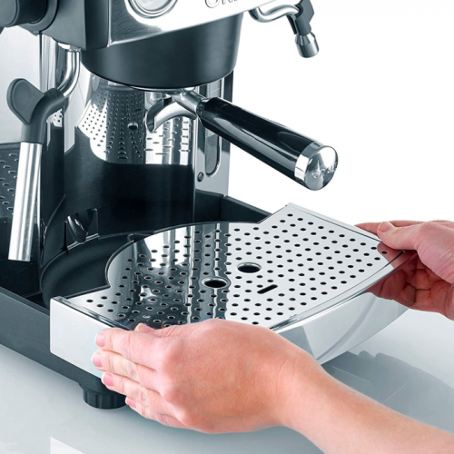 Graef Baronessa ES 902 schwarz Простое управление кофеварки позволяет одним нажатием кнопки приготовить эспрессо вручную в нужном количестве 1 или 2 чашки. Индивидуальные настройки бариста с помощью 5-ступенчатой программной панели (температура заваривания/ПИД-регулятор, объем чашки, производительность пара, жесткость воды с напоминанием о очистке от накипи 12/25/50 литров, 2 программы очистки от накипи). Панель для чашек из высококачественной нержавеющей стали с пассивным нагревом от термоблока. Помпа ULKA с давлением 16 бар. Нагреватель термоблока изготовлен из алюминия. Внутри находится нагревательный элемент и спиральная водопроводные трубки из нержавеющей стали. Трубка для вспенивания молока, вращается на 360°, а каплевидная насадка для вспенивания молока создает идеальную молочную пену. Форсунка может быть отвинчена для легкой очистки. Благодаря встроенному манометру вы всегда можете следить за правильным давлением. Благодаря двухконтурной системе нагрева вы можете одновременно готовить эспрессо и молочную пену. Съемный резервуар для воды объемом 3 литра, который можно наполнять сверху. Профессиональный размер портафильтра 58 мм гарантирует оптимальное приготовление эспрессо. Съемный поддон для капель облегчает очистку и предотвращает нежелательное переполнение благодаря индикатору уровня. Особенности: Кнопки управления: Одинарный эспрессо Двойной эспрессо Ручное управление Программирование индивидуальных настроек: Температура заваривания Объем чашки Производительность пара Уровень жесткости воды с напоминанием об очистке через 12, 25 или 50 л Очистка от накипи (2 программы) ПИД-регулирование заваривания Быстрый нагрев Вращающаяся на 360 трубка для вспенивания молока с каплевидной насадкой для идеальной молочной пены и съемной форсункой для легкой очистки Вращающаяся на 360 трубка для горячей воды Двухконтурная система нагрева для одновременного приготовления эспрессо и молочной пены 2 помпы: ULKA для эспрессо, Паровая Панель для чашек с пассивным нагревом от термоблока Съемный резервуар для воды наполняется сверху Характеристики: Тип: рожковая Мощность: 2.515 кВт Напряжение: 220 В Объем резервуара для воды: 3 л Тип кофе: молотый Капуччинатор: есть Давление: 16 бар Тип нагревательного элемента: термоблок Материал корпуса: металл Цвет: нерж. сталь, черный Ширина: 320 мм Глубина: 335 мм Высота: 375 мм Вес (без упаковки): 10.9 кг Бренд: Graef Модель: Baronessa ES 902 schwarz