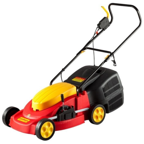 колесная газонокосилка электрический двигатель (1500 Вт) от сетевого кабеля ширина / высота скашивания: 43 см / 25-75 мм выброс травы в жесткий травосборник , назад вес: 20.5 кг уровень шума 89 дБ