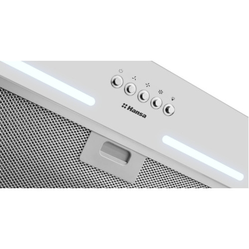 Встраиваемая вытяжка Hansa OMP6251WGH с механическим типом управления, LED-подсветкой, имеет минимальный уровень шума в 63 Дб, диаметр для вывода воздуха в 12 см, длина шнура 120 см, а ее полная мощностью составляет 146 Вт. Имеется режим отвода и режим рециркуляции. В комлпект входит 1 жировой фильтр. Угольные фильтры приобретаются отдельно, тип угольного фильтра - Kf 17154.