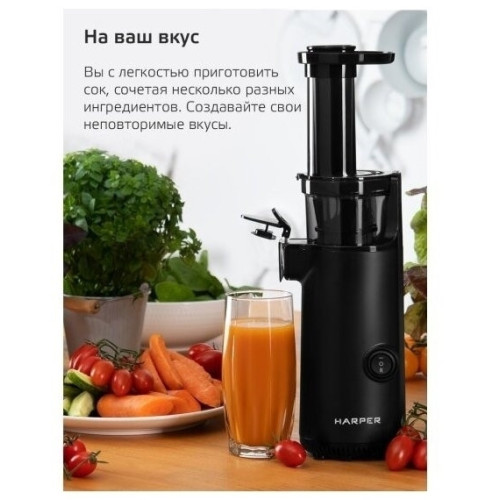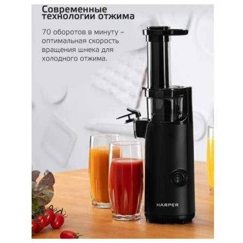 Если вы заботитесь о своём здоровье и любите натуральные свежевыжатые соки, шнековая соковыжималка Harper HJE-S01 станет незаменимым помощником на кухне. Устройство имеет эргономичное вертикальное исполнение и не занимает много места при хранении или работе. Низкие обороты вращения шнека обеспечивают наиболее правильный отжим ягод, фруктов, овощей или зелени, сохраняются все витамины и питательные вещества. Чтобы отжать всё до последней капли – воспользуйтесь реверсом. Механизм отжима прост в сборке и практичен в уходе.