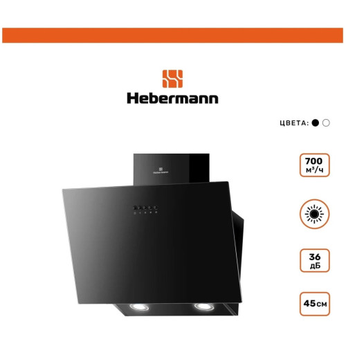 Кухонная вытяжка, Наклоння HBKH 45.6 B, HEKS100019 . Наклонная кухонная вытяжка HBKH 45.6 B Хотите создать современное пространство, в котором приятно готовить? Модель HBKH 45.6 B сама по себе является дизайнерским объектом. Ее черное гладкое стекло идеально сочетается с индукционными и керамическими плитами. Устройство имеет 3 скорости и эффективно борется с запахами, влажностью, дымом. Светодиодная подсветка создает нужный обзор и яркую творческую атмосферу. В результате ничто не может помешать вашей кулинарной магии. Не забывайте, что производительность вытяжки зависит от чистоты фильтров. Угольные фильтры следует регулярно менять, металлические можно мыть вручную или в посудомоечной машине. Модель подходит для подключения к вентиляции и эксплуатации в режиме рециркуляции. Hebermann - немецкий производитель крупной бытовой техники для кухни, набирающий популярность в России. Основополагающий принцип работы бренда Hebermann – постоянный поиск и разработка технологических решений в области производства, обслуживания и продажи встраиваемой техники. Чтобы соответствовать запросам современных покупателей, Hebermann привлекает к разработкам инженеров и дизайнеров из стран Европы, США и Азии. С техникой Hebermann легко воплотить в жизнь проект кухни любой сложности и стиля – от уютного кантри в просторном загородном доме до дерзкого контемпорари в апартаментах или квартирах-студиях.