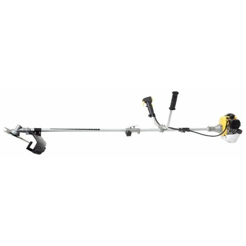 тип триммера: переносной мощность ДВС 1.2 л.с. двухтактный двигатель емкость топливного бака 0.5 л ширина скашивания 42 см режущий элемент триммера: леска и нож, леска 2.40 мм конструкция штанги: прямая форма рукояти: Т-образная (велосипедная) плечевой ремень наличие колес: нет вес 8 кг