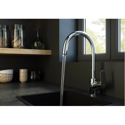 Смеситель для кухни AM.PM F8007700 Like, со встроенным каналом для питьевой воды, успешно совмещает в себе два в одном. Благодаря прогрессивной технологии Fresh Boost при вращении ручки на 90 градусов вы можете наслаждаться чистой водой из фильтра. Если же Вам нужна обычная вода, смеситель управляется привычным способом. Также, конструкция, совмещающая в себе 2 в 1, экономит место и придает кухне опрятный вид без лишних элементов.