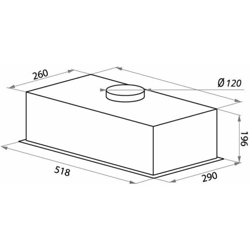 Лицевая панель стеклянная, жировой фильтр спрятан за тонированным стеклом. Вытяжка полностью встраивается в кухонный шкафчик над варочной поверхностью, данная особенность позволяет сэкономить пространство в интерьере.Полная потребляемая мощность мотора 124 Вт, максимальная производительность 850 м3/ч. Данная вытяжка может работать на кухне площадью до 30 м2. Уровень шума составляет 53 Дб. Вытяжка комплектуется энергосберегающим LED освещением 2*2 Вт. Вытяжка предназначена для встраивания в кухонный шкаф. Работает в режиме отвода в вентиляционное отверстие, либо в режиме рециркуляции (использование сменного угольного фильтра, в комплект не входит).