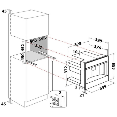 Основные характеристики - Потребляемая мощность: 1350 Вт - Максимальное давление: 15 бар - Используемый кофе: молотый, зерновой - Тип кофемолки: жерновая - Количество степеней помола: 7 уровней - Объем контейнера для зерен: 200 г - Съемный контейнер для воды: да - Объем резервуара для воды: 2 л - Тип нагревателя: бойлер - Контейнер для отходов: да - Капучинатор: да - Установка: встраиваемая Управление - Управление: сенсорное, электронное - Тип дисплея: TFT, сенсорный - Регулировка порций: да - Регулировка крепости кофе: да - Регулировка температуры кофе: да - Регулировка объема молочной пены: да Приготовление напитка - Приготовление эспрессо: да - Режим приготовления эспрессо: автоматический - Возможность приготовления капучино: есть - Режим приготовления капучино: автоматический - Приготовление латте: да - Приготовление латте макиато: да - Приготовление лунго: да - Приготовление флэт уайт: да - Молочная пена: да - Одновременное приготовление двух чашек: да Функции и режимы - Контроль крепости кофе: да - Подогрев чашек: да - Горячая вода: да - Автоматическая декальцинация: да - Автоматическое промывание элементов циркуляции молока: да - Режим энергосбережения: да - Автоматическое отключение: да Особенности - Съемное заварное устройство: да - Трубка подачи пара: да - Съемный лоток для сбора капель: да - Подсветка чашек: да - Регулировка жесткости воды: да - Регулировка высоты дозатора для чашек: да Индикация - Индикатор уровня воды: да - Индикация включения: да - Индикатор необходимости очистки: да - Индикатор готовности к работе: да Корпус - Материал корпуса: металл/пластик - Цвет: чёрный - Материал решетки каплесбора: металл Комплектация - Фильтр для воды: в комплекте - Кувшин для вспенивания молока: в комплекте - Мерная ложечка: в комплекте - Инструкция: да Питание - Длина сетевого шнура: 1 м Размеры и вес - Высота: 45.5 см - Ширина: 59.5 см - Глубина: 39.8 см - Высота встраивания: 452 мм - Ширина встраивания: 568 мм - Глубина встраивания: 545 мм - Вес: 26 кг