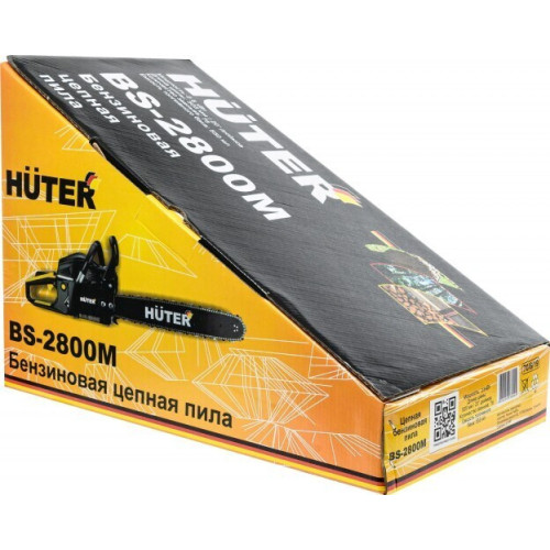 Бензопила Huter BS-2800M - прочный и мощный агрегат, позволит справиться с задачами любого уровня сложности. Обладает долговечной конструкцией, отличной маневренностью. Резиновые амортизаторы, расположенные между рукоятками и картером пилы, снижают вредную вибрационную нагрузку при работе с бензопилой, делают работу комфортнее. Масляный бак размещается в передней части картера. Принудительная смазка цепи и шины применяется для снижения трения между ними, что увеличивает срок службы пильной гарнитуры. Легкий старт влияет на скорость запуска, особенно в зимний период. Он добавляет дополнительный крутящий момент при рывке. Безопасности в модели уделено много внимания. Блокировки курка газа предотвращает случайное нажатие. Функция механического инерционного тормоза цепи также важна: при резком отскоке пилы во время пиления (вверх и назад) рука упирается в ручку тормоза и отщелкивает ее, а тормозная лента затягивается и тормозит барабан сцепления, цепь при этом останавливается практически мгновенно. Защитный щиток в случае разрыва цепи или ее соскока с шины предотвращает травмирование. Преимущества: * Боковое расположение механизма натяжения цепи * Комбинированная система управления заслонками карбюратора * Регулируемый карбюратор отличается удобством и простотой настройки * Металлический маслонасос обеспечивает принудительную подачу смазки цепи и шины * Быстросъемная крышка воздушного фильтра значительно упрощает обслуживание воздушного фильтра * Быстросъемный воздушный фильтр легко снимается, прост в обслуживании * Быстросъемный механизм тормоза пильной цепи облегчает очистку от опилок * Хромовое покрытие поршневой группы * Цепь и шина в комплекте