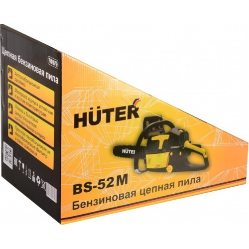 Бензопила Huter BS-52M 70/6/9 обладает долговечной конструкцией, отличной маневренностью и позволяет справиться с разными задачами. Блокировка кнопки защищает оператора от случайного включения прибора. Между рукоятками и картером пилы расположены резиновые амортизаторы, которые снижают уровень вибрации и делают работу комфортнее. Автоматическая смазка цепи и шины применяется для снижения трения между ними, что увеличивает срок службы пильной гарнитуры.