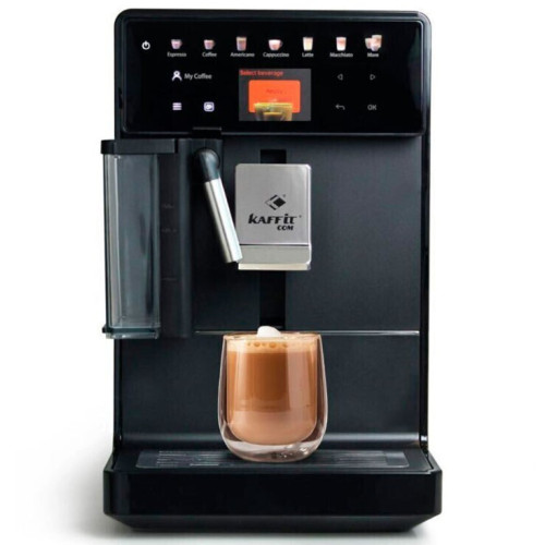 Кофемашина KAFFIT A5 отличается интуитивным управлением по сенсорным иконкам, а отображение выбора на цветном дисплее. Выбирайте программу и получайте удовольствие от ароматного кофейного напитка. Стальная коническая кофемолка с 7 степенями помола измельчает зерна с сохранением естественных свойств. Автоматический капучинатор с режимами взбивания и подогрева молока делает густую пенку. Экстракция под давлением 15 Бар и равномерная скорость подачи воды обеспечивают приготовление ароматного кофе с насыщенным вкусом. Функция подачи горячей воды позволяет готовить чай или напитки из трав. Система автоматической очистки от кофейных масел и накипи гарантирует чистоту внутренних компонентов варочной группы. В KAFFIT A5 реализована технология автоматического отключения, которая повышает безопасность и помогает экономично расходовать электроэнергию.
