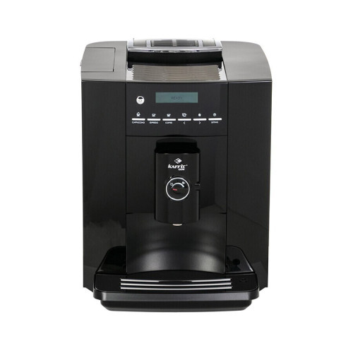 Кофемашина Kaffit.com Nizza Business KLM1604А мощностью 1400 Вт способна одновременно приготовить две чашки эспрессо, латте, капучино, латте макиато, горячего молока. Тип используемого аппаратом сырья — молотые и целые кофейные зерна, для измельчения которых предусмотрена кофемолка с металлическими жерновами и возможностью выбора одной из пяти степеней помола. Объем бака для воды составляет 1,8 л, вместительность отсека для кофейных зерен — 250 г. Предусмотрено подключение устройства к системе водоснабжения. Кофемашина габаритами 302 х 370 х 450 мм оснащена одним термоблоком, насосом, который поддерживает давление 15 бар, встроенной системой «Автокапучино» для создания мелкодисперсной пены. Кнопочный блок управления с LCD-дисплеем позволяет выбирать вид напитка, устанавливать жесткость воды, регулировать объем, температуру, крепость кофе. Поддержка Wi-Fi обеспечивает дистанционный контроль работы аппарата. Рекомендуемая дневная производительность кофемашины — до 40 чашек напитка. Предусмотрена встроенная программа очистки устройства, удаления накипи, автоматическая промывка капучинатора. Функция предварительного заваривания кофе позволяет готовить напитки с более насыщенным вкусом и ароматом. Особенности: * стильный и лаконичный дизайн * приготовление широкого спектра напитков нажатием кнопки (эспрессо, двойной эспрессо, кофе, двойной кофе, капучино, латте, латте маккиато, порция горячей воды) * автоматический капучинатор с возможностью переключения на режимы взбивания и подогрева молока * автоматические программы чистки кофемашины от кофейных масел, накипи, системы приготовления капучино гарантируют оптимальную чистоту и гигиеничность, не требуется извлечение заварочного блока из кофемашины и чистки его вручную. * настройка рецептуры напитка: крепость, объем воды, температура заваривания