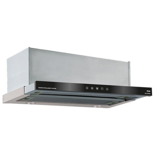 Вытяжка Kaiser EA644 Eco встраивается в шкаф, особенность модели - выдвижная панель c сенсорным управлением Full touch и LСD дисплеем. Прикосновением к сенсору включается одна из трех скоростей, зажигается светодиодное освещение, устанавливается таймер.