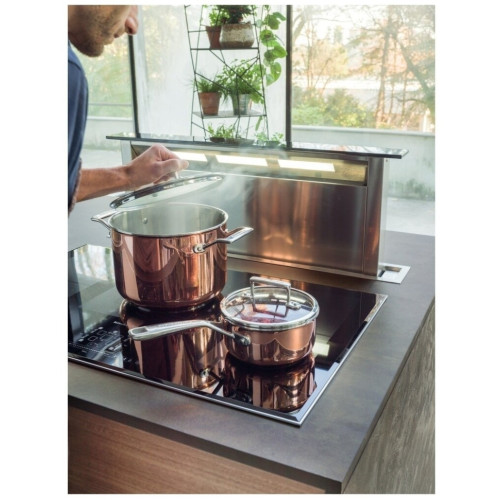 Встраиваемая вытяжка в столешницу KitchenAid KEBDS 90020 с сенсорным управлением, голубой светодиодной подсветкой и моющимися фильтрами гарантирует свежий запах в кухне в любой ситуации. Модель изготовлена из нержавеющей стали с покрытием Easy-toClean со встроенной системой безопасности. Рекомендуется регулярно заменять фильтры вытяжки для обеспечения производительности прибора на должном уровне. Перед приобретением следует внимательно изучить параметры фильтра, соответствующие встраиваемой вытяжке KEBDS 90020 шириной 90 см.