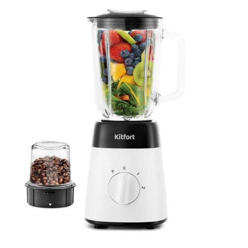 Блендер Kitfort КТ-1381 идеально подходит для смешивания фитнес-напитков, приготовления смузи, протеиновых смесей, коктейлей, супов-пюре, детского питания. Кофемолка может перемалывать и измельчать твердые ингредиенты: кофейные зерна, зерна перца. Чаша с мерной шкалой ёмкостью 1,5 л и чаша кофемолки ёмкостью 0,2 л выполнены из стекла. В крышке чаши блендера есть отверстие для добавления ингредиентов непосредственно во время работы. Колпачок отверстия может использоваться как мерный стакан. Управление блендером осуществляется с помощью ручки регулировки скорости на передней панели. У блендера 2 скорости и импульсный режим. Блендер оснащён прочным 4-лезвийным ножом из нержавеющей стали с оптимальной формой лезвий и заточки для эффективного измельчения продуктов.