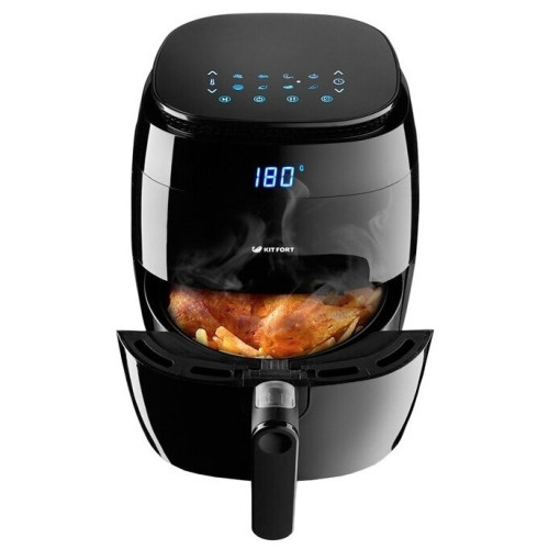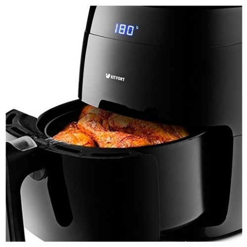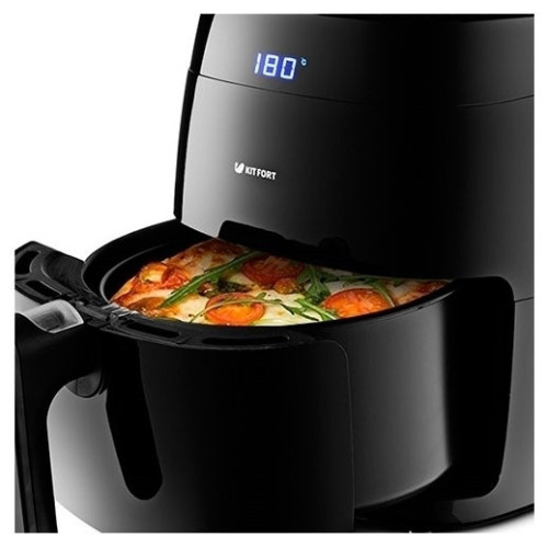 Современный аэрогриль Kitfort KT-2202 замечателен не только стильным дизайном. Он может использоваться как аэрогриль, а также как аэрофритюрница и духовка, и позволяет готовить большинство продуктов без добавления масла. При помощи системы циркуляции горячего воздуха продукты равномерно обжариваются со всех сторон и получаются нежными внутри и с хрустящей корочкой снаружи. Аэрогриль оснащен электронным управлением, он имеет 8 автоматических программ и дисплей. Продукты готовятся в специальной корзине, которая вставлена в поддон с антипригарным покрытием. По окончании приготовления аэрогриль автоматически отключается. Поддон с корзиной легко вынимаются и моются.