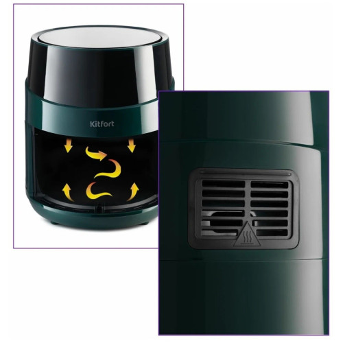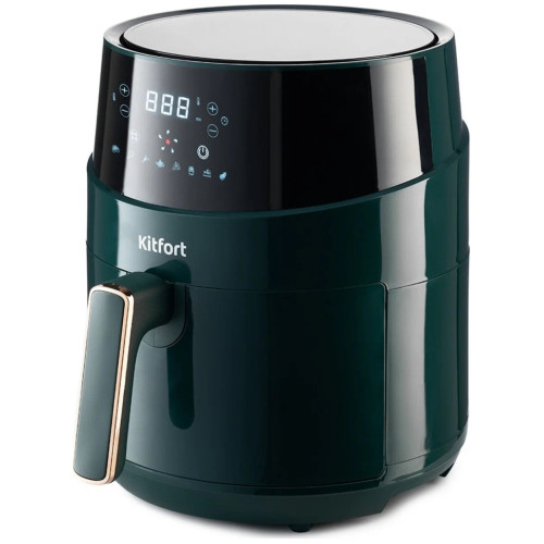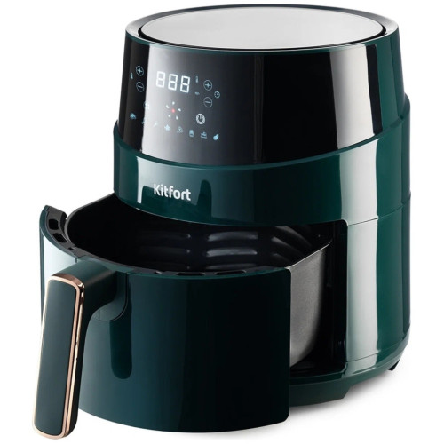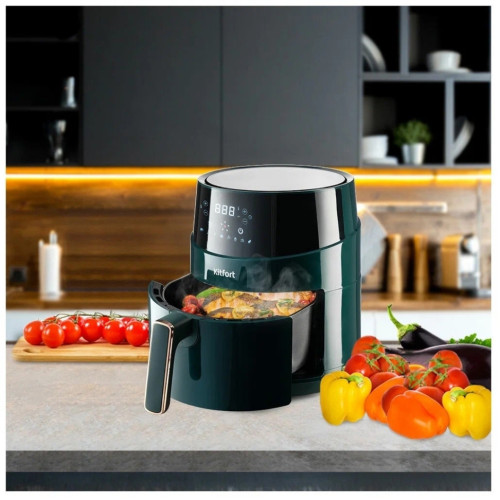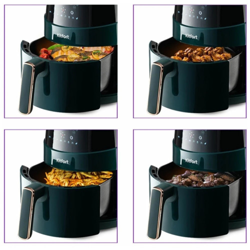 Аэрогриль Kitfort КТ-2222 Жарка, запекание, выпечка – всё на ваш вкус! Современный аэрогриль Kitfort КТ-2222 может использоваться как аэрогриль, а также как аэрофритюрница и духовка и позволяет готовить большинство продуктов с минимальным количеством масла или вовсе без его добавления. Готовьте самые разнообразные блюда! Аэрогриль обладает мощностью 1500 Вт, благодаря чему приготовление не займёт много времени. Вместительной корзиной на 3,3 л хватит, чтобы накормить всю семью! Готовьте мясо, птицу, рыбу, морепродукты, овощи и даже разнообразную выпечку или пиццу. Равномерное приготовление Продукты готовятся в специальной корзине, которая вставлена в поддон. Благодаря системе циркуляции горячего воздуха, продукты обжариваются равномерно со всех сторон, получаясь нежными внутри и с хрустящей корочкой снаружи. Простое управление Аэрогриль имеет 8 автоматических программ. А используя сенсорную панель управления, вы можете настроить нужный нагрев вручную от 80°C до 200°C , время приготовления от 1 до 60 минут. В инструкции представлены рецепты разнообразных блюд. Лёгкая очистка Съёмный поддон и решётка имеют антипригарное покрытие, благодаря чему они легко чистятся после использования, а блюда можно готовить практически без добавления масла. Украшение вашей кухни! Аэрогриль КТ-2222 имеет оригинальную форму, цвет и лаконичный дизайн. Благодаря форме корпуса он отлично впишется в вашу кухню и не займёт много места.