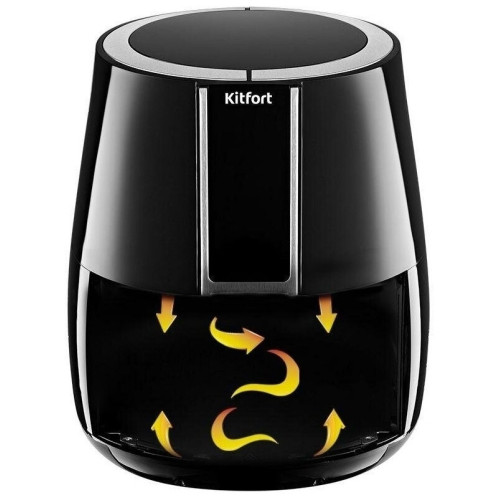 Особенности: Благодаря системе циркуляции горячего воздуха, продукты обжариваются равномерно со всех сторон; Управление: сенсорное; Встроенные программы приготовления: да; Количество программ: 8; Рабочая поверхность/ёмкость: закрытая; Рабочий/заправочный объём: 3,5; Антипригарное покрытие: да; Съёмная чаша: да; Съёмная крышка: да; Регулировка уровня нагрева: да; Индикация режимов работы: есть; Удобство в использовании: нескользящие ножки, таймер, Ручки с теплоизоляцией, Регулировка температуры, Индикатор работы, Гриль; Мощность: 1500; Цвет корпуса: чёрный; Материал корпуса: пластик; Прочие особенности и свойства: Аэрогриль Kitfort КТ-2227 может использоваться как аэрогриль, а также как аэрофритюрница и духовка и позволяет готовить большинство продуктов с минимальным количеством масла или вовсе без его добавления. Продукты готовятся в специальной корзине, которая вставлена в поддон. Благодаря системе циркуляции горячего воздуха, продукты обжариваются равномерно со всех сторон, получаясь нежными внутри и с хрустящей корочкой снаружи. Аэрогриль имеет 8 автоматических программ. А используя сенсорную панель управления, вы можете настроить нужный нагрев вручную от 70 °C до 200 °C , время приготовления от 1 до 60 минут. В инструкции представлены рецепты разнообразных блюд Размеры: 280 х 360 х 324 мм; Вес: 4,7