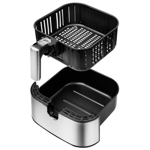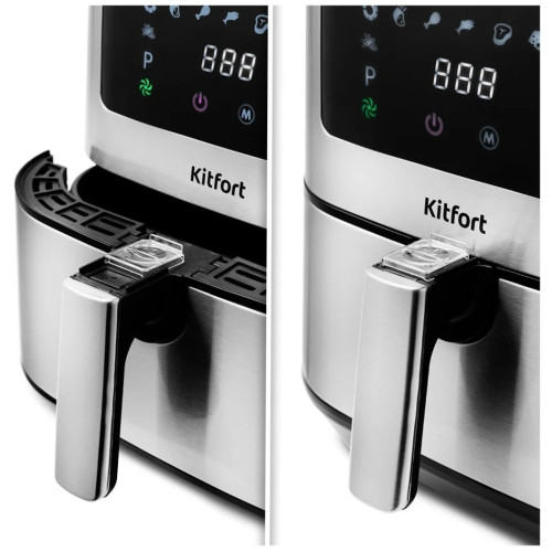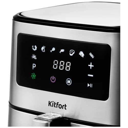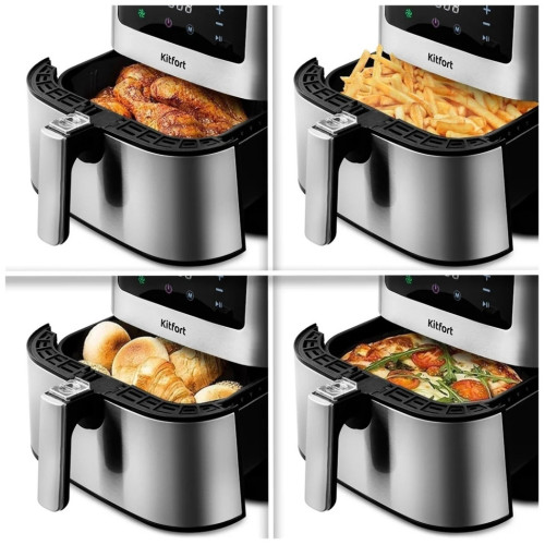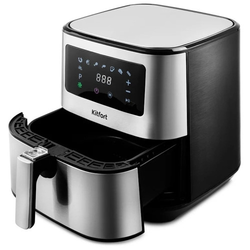 Аэрогриль Kitfort КТ-2228 Жарка, запекание, выпечка – всё на ваш вкус! Аэрогриль с текстурированным корпусом Kitfort КТ-2228 может использоваться как аэрогриль, аэрофритюрница и духовка. Это позволяет готовить большинство продуктов с минимальным количеством масла или вовсе без его добавления. Продуманный функционал Аэрогриль сочетает в себе стильный дизайн и продуманный функционал. Он обладает внушительной мощностью 1700 Вт, благодаря чему приготовление не займёт много времени. Вместительной корзиной на 5,5 л хватит, чтобы накормить всю семью! Равномерное приготовление Благодаря системе циркуляции горячего воздуха, продукты обжариваются равномерно со всех сторон, получаясь при этом нежными внутри и с хрустящей корочкой снаружи. Многофункциональная панель управления Аэрогриль оснащён сенсорным управлением, он имеет 9 автоматических программ и программу с ручными настройками. Программы позволяют использовать готовые шаблоны настроек, вам не придётся контролировать процесс приготовления лично. Безопасное извлечение корзины Во избежание случайного выпадения корзины из поддона, на ручке корзины имеется специальная кнопка для её извлечения. Лёгкая очистка Съёмный поддон и корзина имеют антипригарное покрытие, благодаря чему они легко чистятся после использования.
