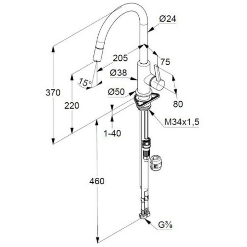 Тип излива гибкий, поворотный