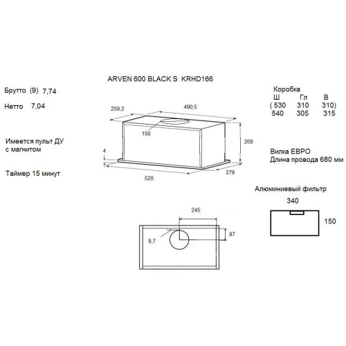 Встраиваемая вытяжка Krona Arven 600 Black S