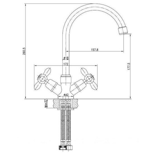 Смеситель для кухни Aquanet уносит нас в прошлое, когда было изобретено радио, в квартирах стали появляться первые телефоны, а сантехника напоминала скорее предметы декора. Но ничего устаревшего в модели нет, кроме создаваемого им ретро-настроения. Интересно выглядят крестообразные вентили двухрычажного управления потоком воды. Очень искусно собранные, они напоминают ювелирные изделия. Высокий излив очень практичен для кухни, так как позволяет наливать воду в высокие сосуды или мыть большие кастрюли. Изделие оборудовано керамическим картриджем, который хорошо зарекомендовал себя в России, так как не выходит из строя в результате нестабильного давления воды, гидравлических ударов и перегрузок.