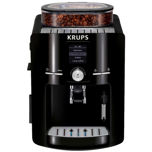 Krups EA 8255 Технические характеристики Тип: эспрессо, автоматическое приготовление Количество групп: 1 Используемый кофе: зерновой Тип нагревателя: термоблок Мощность: 1450 Вт Объем резервуара для воды: 1.8 л Максимальное давление: 15 бар Манометр: нет Настройки: контроль крепости кофе, регулировка порции горячей воды Автоматическая декальцинация: есть Возможность приготовления капучино: есть, автоматическое приготовление Таймер: есть Автоотключение: есть Конструкция Встроенная кофемолка: есть, регулировка степени помола, емкость контейнера для зерен 275 г Противокапельная система: нет Одновременное приготовление двух чашек: есть Дисплей: есть, с подсветкой Подача горячей воды: есть Подогрев чашек: есть Контейнер для отходов: есть Съемный лоток для сбора капель: есть Особенности Материал корпуса: пластик Индикатор уровня воды: есть Индикация включения: есть Размеры (Ш*В*Г): 25x37x33 см Дополнительная информация: фильтр для воды; регулируемая высота дозатора для кофе; контейнер для молока Бренд: Krups Модель: EA 8255