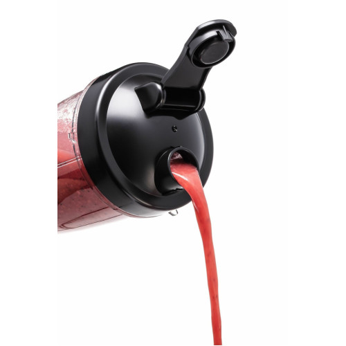 Многофункциональный блендер Режимы работы: высокоскоростной, смешанный и PULSE Стакан для смешивания/питья объемом 600 мл 6 поперечных лезвий из нержавеющей стали Пластик, используемый для изготовления стакана, не содержит бисфенол Крышка для питья входит в комплект Стакан, крышку и блок с лезвиями можно мыть в посудомоечной машине Технические данные: Потребляемая мощность 1,0 кВт Размеры прибора Ш x В x Г ≈ 147 x 377 x 147 мм