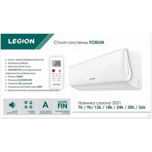 Это бюджетный модельный ряд, который может позволить себе каждый. Они выполнены в стильном классическом белом корпусе с элементами вставок. Индикация температуры отображается на стильном LED дисплее, находящимся под лицевой панелью кондиционера. Компрессор кондиционера изготовлен на заводе GREE Electrics, что отвечает высоким уровнем качества и требований. Компрессор кондиционера работает по принципу on/off. Дизайн кондиционера выглядит очень ярко и красиво, он с легкостью впишется в любой интерьер помещения. Кондиционер обладаем всеми необходимыми функциями и режимами работы. В нем установлен фильтр грубой очистки воздуха, который улавливает мелкие частицы пыли грязи. Кондиционер LEGION FORUM LЕ с легкостью справится с охлаждением вашего помещения. Также кондиционер работает и на обогрев, если температура наружного воздуха за окном не превышает -7*С.