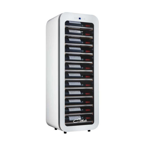 Шкаф для вина Libhof ES-34 — модель белого цвета с корпусом из стали. Имеет одну температурную зону и вмещает до 34 винных бутылок объемом 750 мл. Работа шкафа основана на компрессорном принципе. Благодаря низкому уровню шума и вибраций, сменному угольному фильтру и контролю влажности микроклимат внутри устройства остается максимально благоприятным для хранения вина. Деревянные полки установлены на телескопических направляющих, что обеспечивает хороший обзор и удобный доступ к бутылкам – даже к расположенным сзади. На стеклянной двери модели имеется специальный UV-фильтр, который защищает бутылки от губительных для вина солнечных лучей. Управление параметрами работы модели производится при помощи сенсорных кнопок и ЖК-дисплея с цифровой индикацией температуры.