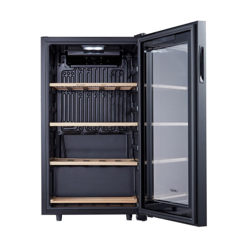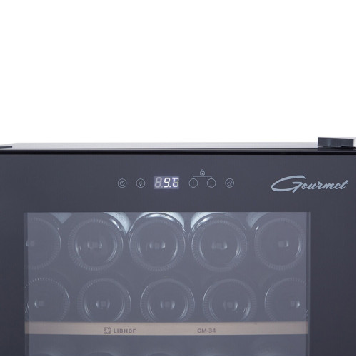 Однозонный шкаф GM-34 может использоваться для охлаждения вина перед подачей, длительного хранения или созревания винной коллекции. Модель рассчитана на размещение в ней до 34 бутылок вина стандартного объема 0, 75 л. Современный компрессор обеспечивает низкий уровень вибраций. На полках из твердых пород дерева не образуется конденсат, что позволяет сохранить этикетки бутылок в первоначальном виде. Современное светодиодное освещение не является источником тепла и сохраняет электроэнергию. На двери установлен тонированный стеклопакет, препятствующий проникновению света и сохраняющий свойства благородного алкоголя. Это позволяет бутылкам с вином храниться в течение долгих лет. Управление параметрами работы модели производится при помощи сенсорных кнопок и ЖК-дисплея с цифровой индикацией температуры.