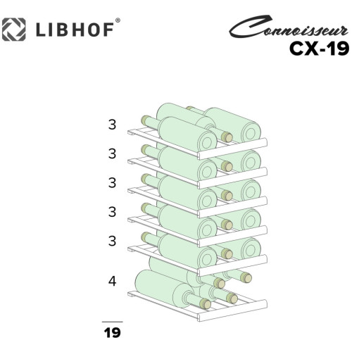 Винный шкаф Libhof CX-19 имеет одну оптимальную температурную зону, которая обеспечит идеальные условия для хранения красного, белого и игристого вин. Модель предназначена для встраивания и вмещает до 19 бутылок типа бордо. Шкаф оснащен современной компрессорной системой, которая значительно снижает вибрацию и шум, что препятствует взбалтыванию вина и появлению осадка. Шесть съемных полок выполнены из массива дерева. Управление осуществляется с помощью удобной панели внутри холодильника и позволяет регулировать температуру с шагом в 1°C. Внутренний вентилятор равномерно распределяет температуру по всему объему шкафа. Очистка воздуха от посторонних примесей осуществляется с помощью сменного фильтра из активированного угля. А дверца с тонированным стеклом и подсветка белого цвета позволяют демонстрировать винную коллекцию посетителям или гостям.