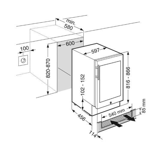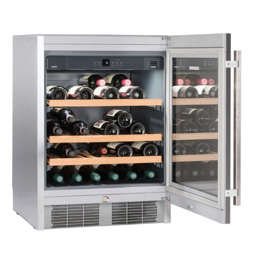 Винный шкаф Liebherr UWKes 1752 - монотемпературный шкаф, встраиваемый под столешницу, с одной температурной зоной. Интегрированное в корпус UWKes 1752 LED-освещение позволяет успешно презентовать винную коллекцию. Воздушный фильтр на основе активированного угля устраняет вредные примеси из воздуха. При необходимости его легко заменить. Особенности: * Вентилируемое охлаждение * Звуковая сигнализация открытой двери * Звуковой и оптический сигнал перегрева * Блокировка от детей * Фильтр с активированным углем * Дверь с замком * Ручка из нержавеющей стали * Хладагент: R600A * Класс энергоэффективности: А * Количество компрессоров: 1 * Количество полок: 4 * Количество полок на телескопических направляющих: 3 * Внутреннее освещение: светодиодное * Регулируемые ножки