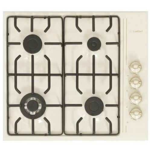 Артикул: 759-671 Встраиваемая газовая варочная панель LuxDorf H60Q41O550 Встраиваемая газовая варочная панель LuxDorf H60Q41O550 идеально подойдет для кухни, оформленной в ретро стиле. Устройство выполнено в бежевом цвете. Этот оттенок можно гармонично сочетать с другой кухонной техникой. Варочная панель имеет четыре конфорки разного диаметра, оборудованные системой газ- контроль и электроподжигом. Благодаря электроподжигу конфорок пользователям не придется применять спички или электрозажигалки для активации газовой панели. Включить, выключить и отрегулировать силу подачи топлива можно посредством поворотных переключателей, расположенных сбоку.