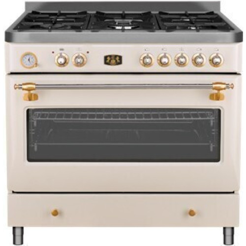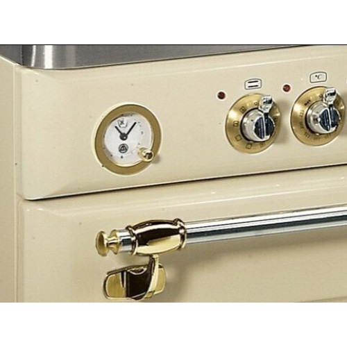 Плита M&G ZBM 3399 C — модель бежевого цвета с бронзовой фурнитурой, станет идеальным дополнением для кухни в классическом стиле. Варочная поверхность оборудована пятью газовыми конфорками, центральная из которых — WOK. Многофункциональная электрическая духовка шириной 90 см оснащена 8 режимами, которые позволяют подобрать программу для любых продуктов, например, «Гриль» и «Турбо» прекрасно подойдут для птицы и мяса, а «Нижний нагрев с конвекцией» — для разнообразной выпечки. Благодаря большому объему камеры (94 л), в нее поместится даже индюшка целиком, а гидролизная очистка упрощает уход после окончания готовки. Тяжелые противни удобно вынимать благодаря двухуровневым телескопическим направляющим. С помощью автоматического электроподжига пламя зажигается от простого поворота переключателя, без спичек и зажигалок. А газ-контроль гарантирует безопасность использования — система не допустит утечки топлива, если огонь случайно погаснет.