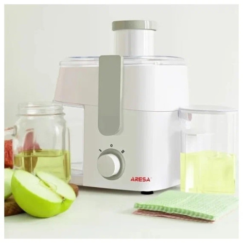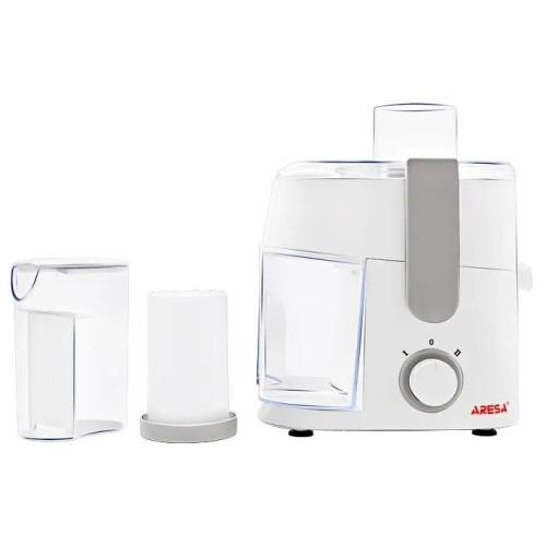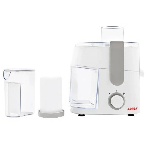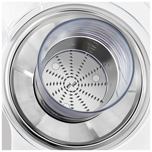 Цвет: белый; Тип: центробежная; Мощность: 500 Вт; Резервуар для сока: стакан, объем 350 мл; Сбор мякоти: автоматический выброс мякоти, объем резервуара 950 мл; Материал корпуса: пластик; Материал сетки центрифуги: металл; Круглая горловина: есть;