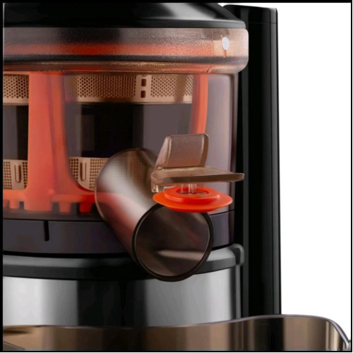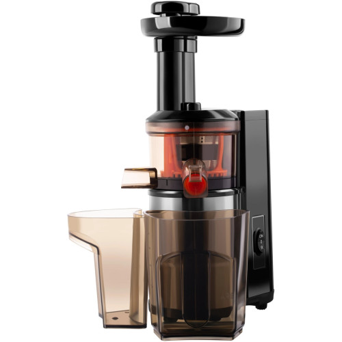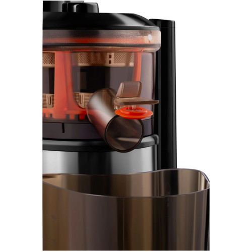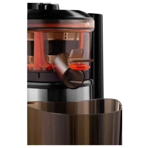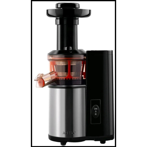 Тип: вертикальная шнековая соковыжималка; Система "капля-стоп": есть; Сбор мякоти: автоматический выброс мякоти, объем резервуара 0.80 л; Мощность: 200 Вт; Резервуар для сока: объем 1 л; Реверс : есть; Максимальная скорость вращения: 60 об/мин; Прорезиненные ножки: есть; Автоматический выброс мякоти: есть